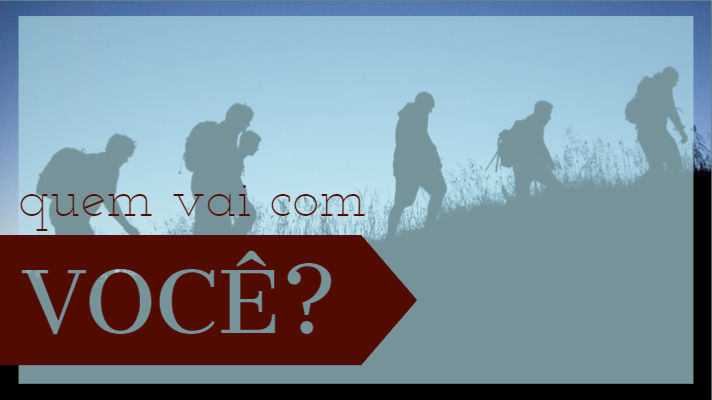 Quem vai com você? Diante dessa pergunta, é possível que alguém imediatamente venha à sua mente. Não importa o destino, talvez você tenha alguém que é tão parte da sua vida, que imediatamente você pensou nessa pessoa. Ou pode ser que não, pode ser que você está num momento só seu, e nem sempre tenha companhia certa de outra pessoa. Mas eu repito a pergunta: quem vai com você? Na vida nós sempre estamos acompanhados. Algumas dessas companhias podemos escolher, outras não. Dentre as companhias, algumas podem nos impulsionar em nossa vida.
